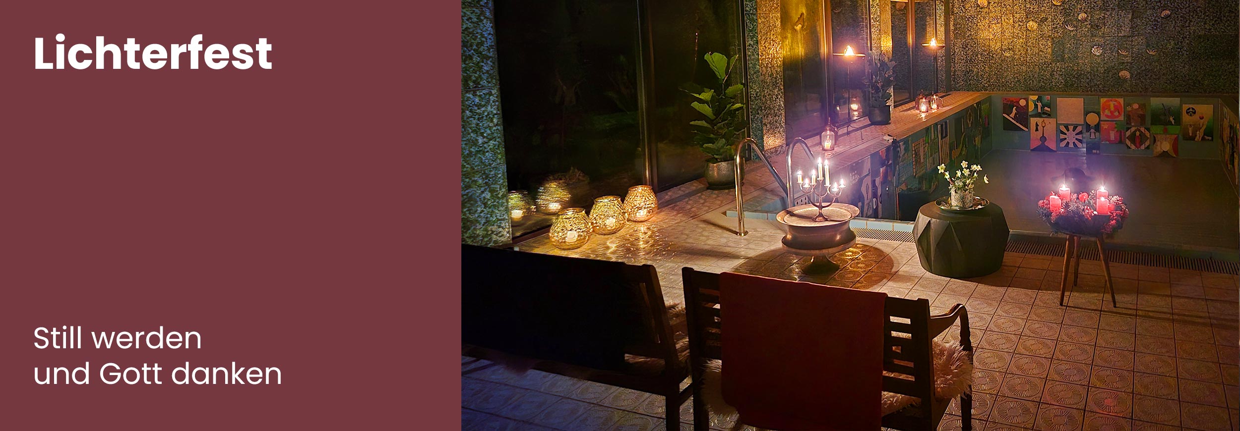 Das Lichterfest ist eine stille Andacht mit musikalischer Begleitung. Jeder ist herzlich eingeladen zur interreligiösen Veranstaltung, die jüdische und christliche Lichter-Zeremonien miteinander verbindet. Wir lauschen sanfter Musik, hören berührende Texte, gehen gemeinsam ins Gebet. Nach einer knappen Stunde verabschieden wir uns wieder in die Nacht.